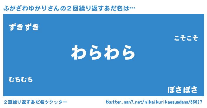 | ヘコむあだ名 | 『ふかざわゆかり(遠い目)』『ふかにー』 |
