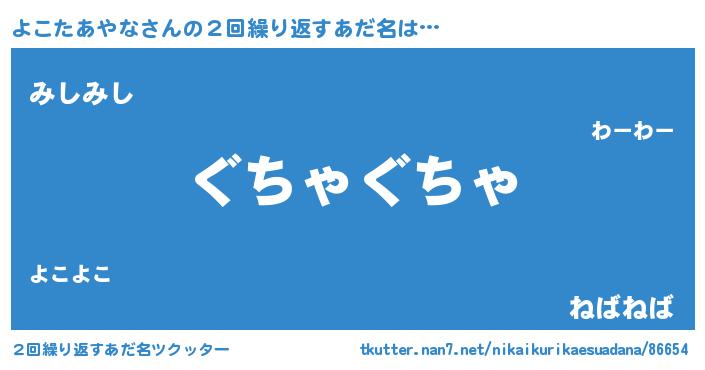 | ヘコむあだ名 | 『よこたあやな(苦笑)』『よこっちょ』 |