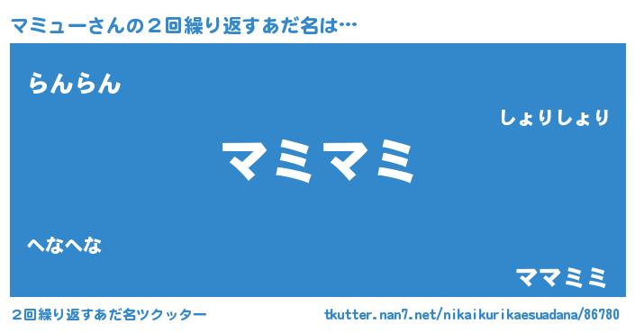 | ヘコむあだ名 | 『マミもー』『豆乳』『マミュー(笑)』 |