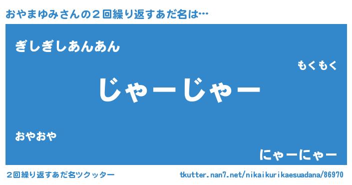| 意味不明あだ名 | 『住所不定無職おやまゆみ(7歳)』 |
