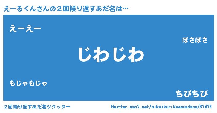 | 意味不明あだ名 | 『住所不定無職えーるくん(8歳)』 |