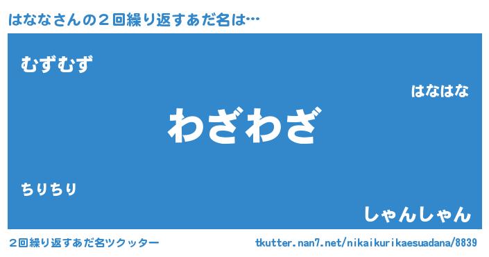 | 意味不明あだ名 | 『つくし科はなな属』『自称はなな』 |