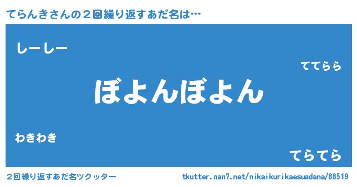 | 欧米人風あだ名 | 『ダニエルてらんき』『マイケルてらんき』 |
