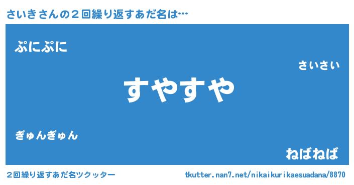 | 意味不明あだ名 | 『住所不定無職さいき(95歳)』 |