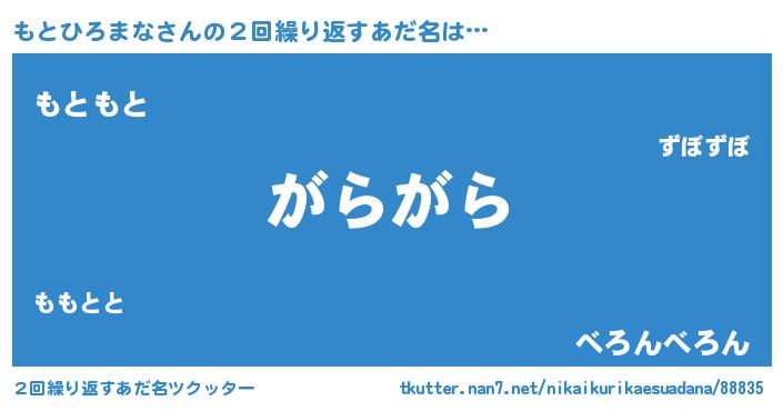 | ヘコむあだ名 | 『もとひろまな(小並感)』『もともー』 |