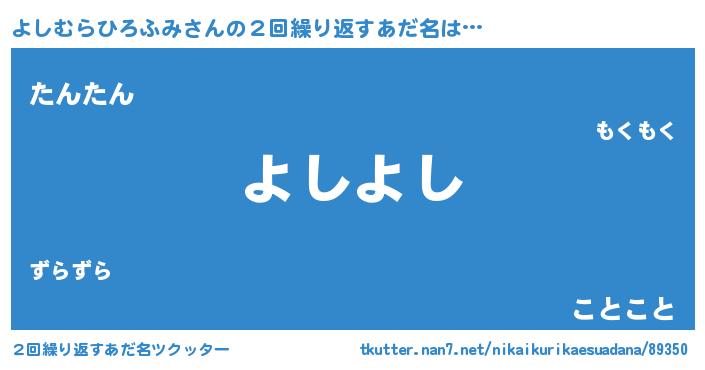 | ヘコむあだ名 | 『よしもー』『よしむらひろふみ(遠い目)』 |