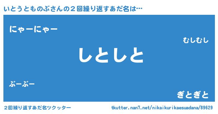 | 意味不明あだ名 | 『住所不定無職いとうとものぶ(2歳)』 |