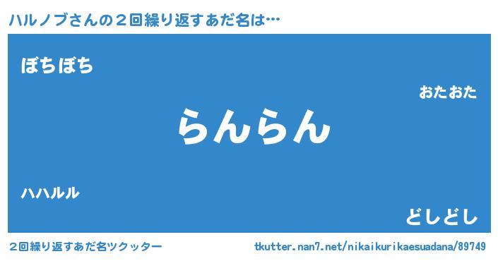 | 男性向けラノベタイトル風あだ名 | 『ハルノブスレイヤー』 |