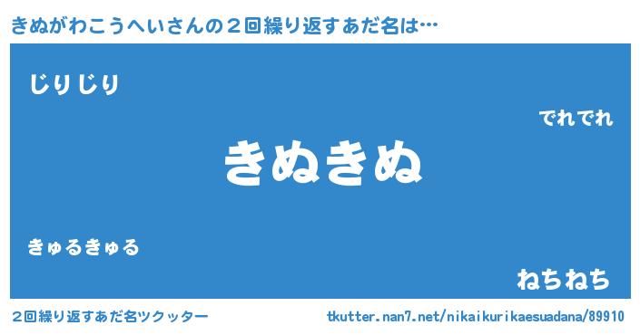 | 男性向けラノベタイトル風あだ名 | 『きぬがわこうへいの憂鬱』 |