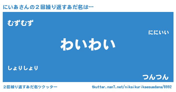 | 男性向けラノベタイトル風あだ名 | 『転生したらにいあだった件』 |