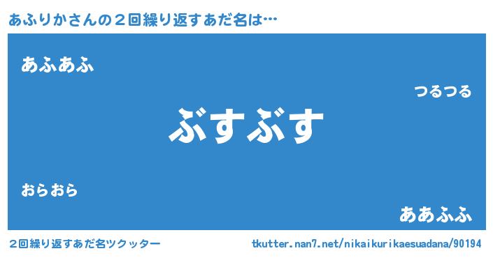 | ヒーロー風カッコイイあだ名 | 『正義の使者あふりか』『魔戒騎士アフ』 |