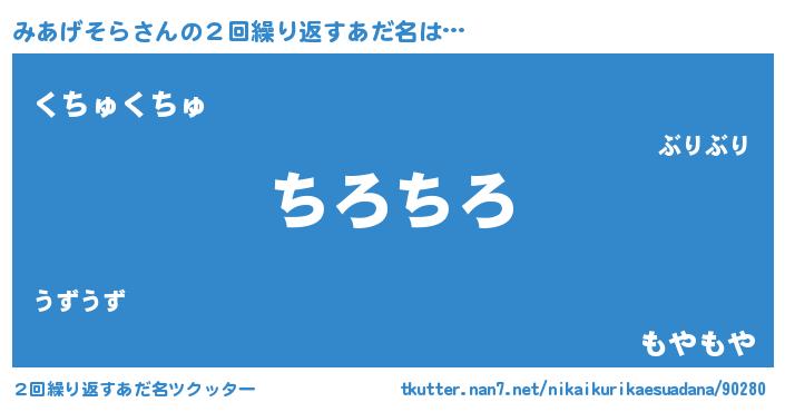 | ヘコむあだ名 | 『みあげそら(遠い目)』『みあぷりん』 |