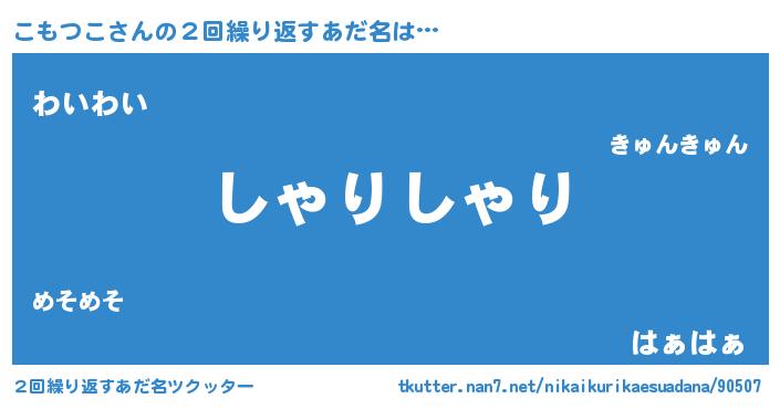 | 意味不明あだ名 | 『住所不定無職こもつこ(77歳)』 |