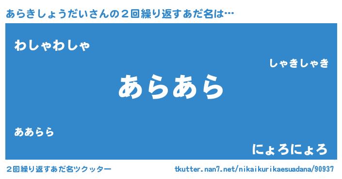 | ヒーロー風カッコイイあだ名 | 『スーパーアラキショウダイ』 |