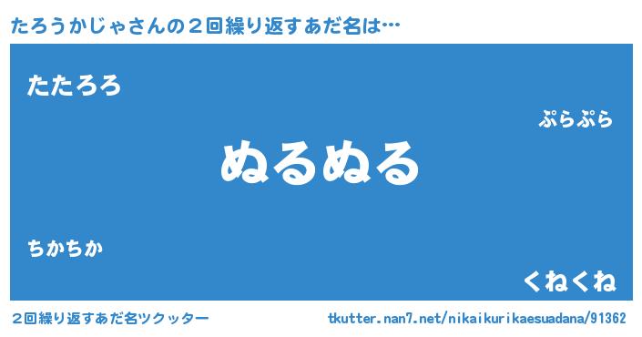 | 男性向けラノベタイトル風あだ名 | 『たろうかじゃの嫁は女の子じゃないと思った?』 |