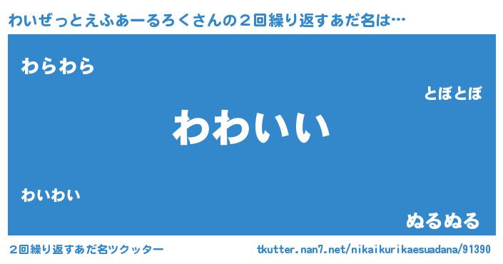 | 欧米人風あだ名 | 『わいぜっとえふあーるろくクリステル』 |