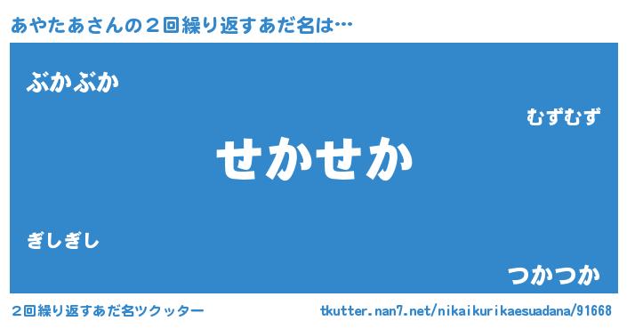 | 意味不明あだ名 | 『住所不定無職あやたあ(84歳)』 |