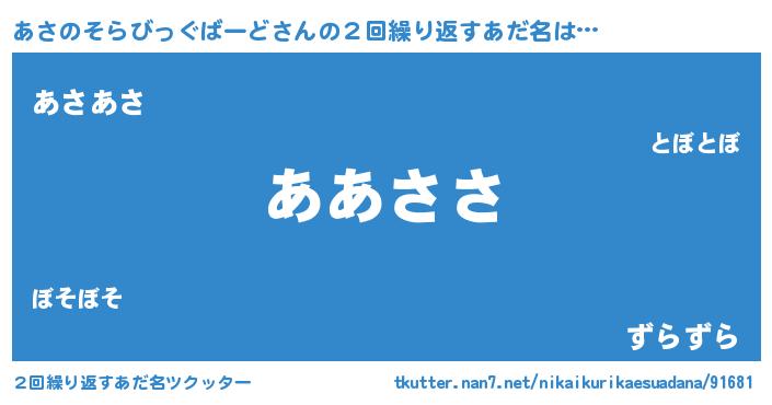| 意味不明あだ名 | 『あさのそらびっぐばーどフォーエバー』 |