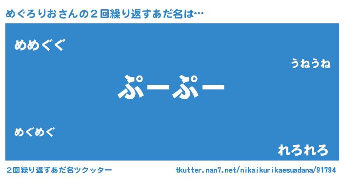| 意味不明あだ名 | 『眠気覚ましガムめぐろりお味』 |