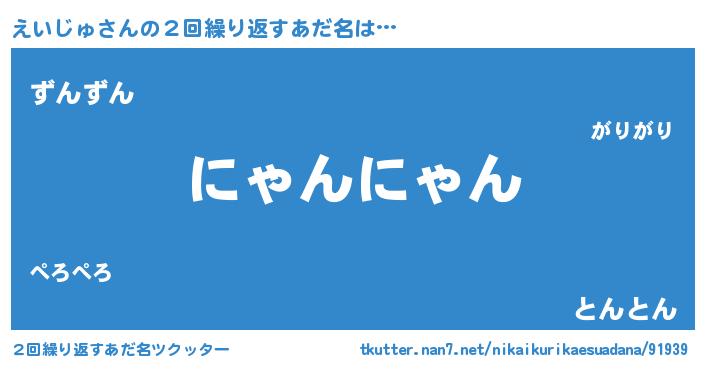 | 男性向けラノベタイトル風あだ名 | 『えいじゅに滅ぼされるだけの簡単なお仕事です』 |