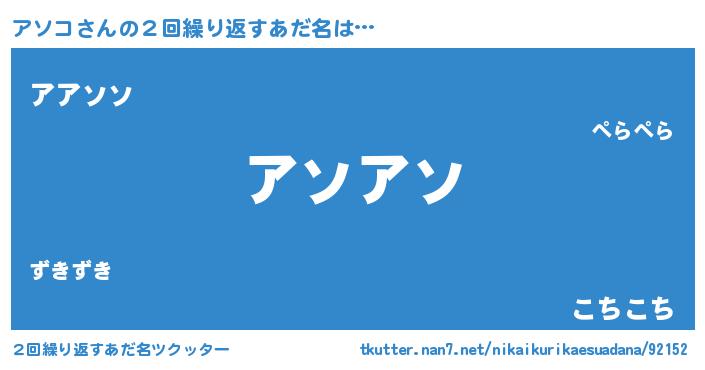 | ファンタジー風あだ名 | 『アソフェル』『エターナルアソコー』 |