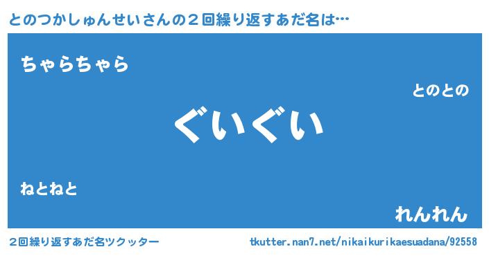 | ヘコむあだ名 | 『とのつかしゅんせい(笑)』『とのにー』 |