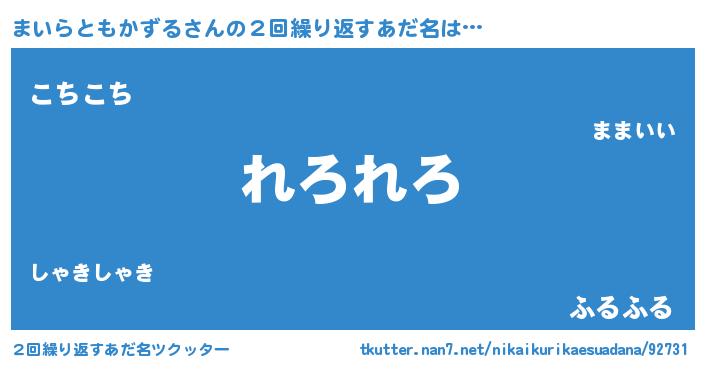 | ヘコむあだ名 | 『まいらともかずる(遠い目)』『レバニラ』 |