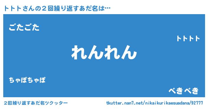 | 男性向けラノベタイトル風あだ名 | 『転生したらトトトだった件』 |