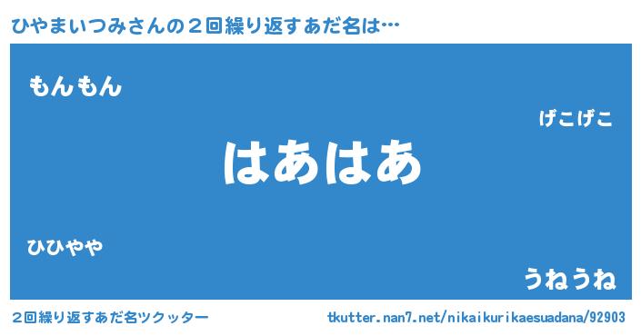 | 可愛いあだ名 | 『ひやちゅっちゅ』『ひやうちぇる』 |