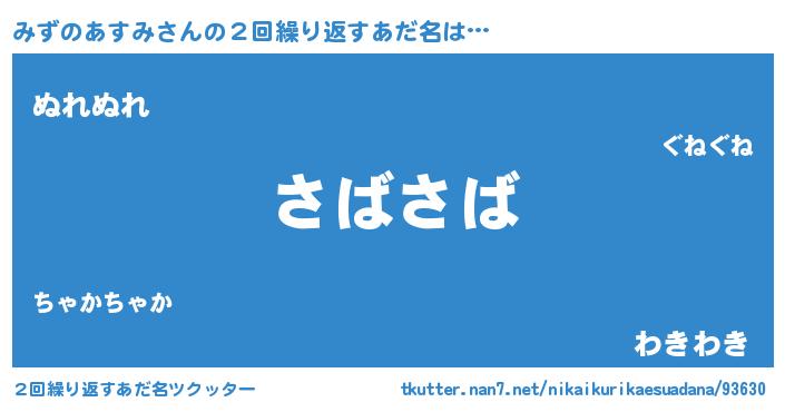 | 料理風あだ名 | 『みずのあすみのカルパッチョ風』 |