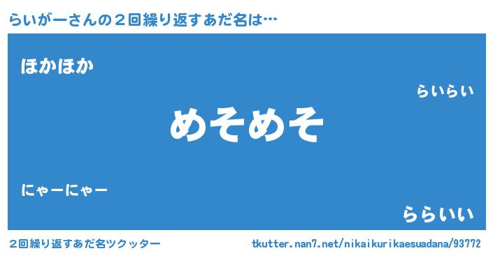 | 意味不明あだ名 | 『自称らいがー』『らいがーフォーエバー』 |