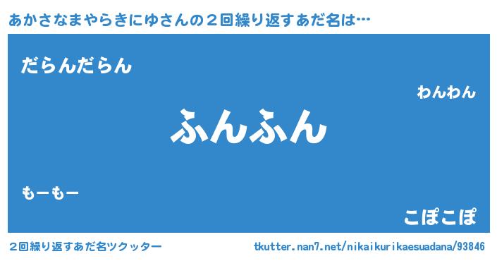 | 男性向けラノベタイトル風あだ名 | 『おまえをオタクにしてやるから、俺をあかさなまやらきにゆにしてくれ! 』 |