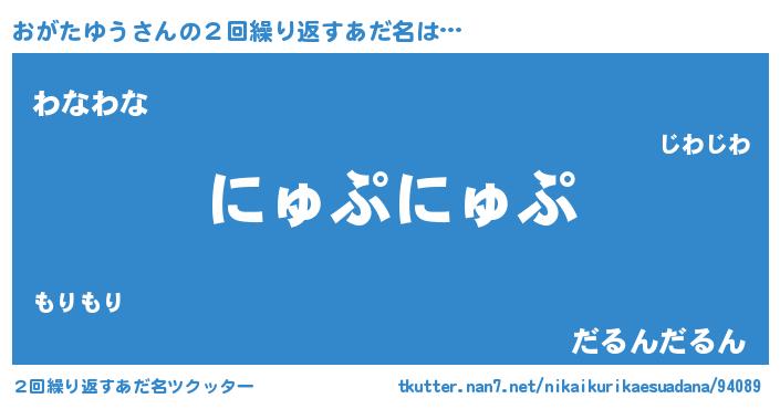 | 女子向けラノベタイトル風あだ名 | 『おがたゆうの卵を拾いまして』 |