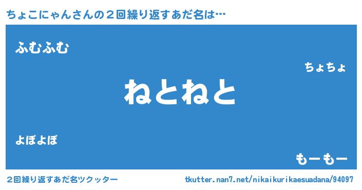 | 男性向けラノベタイトル風あだ名 | 『ちょこにゃんの嫁は女の子じゃないと思った?』 |