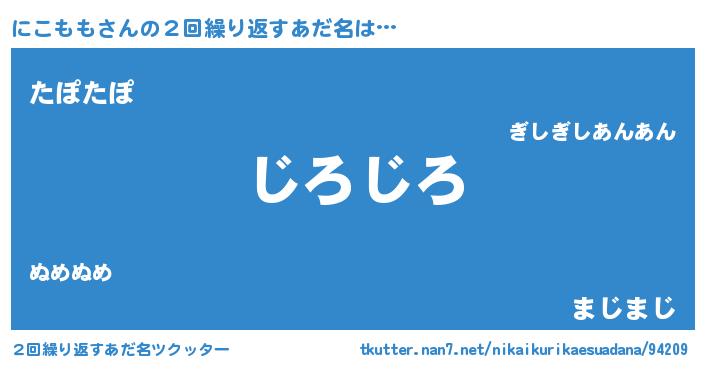 | 意味不明あだ名 | 『住所不定無職にこもも(93歳)』 |