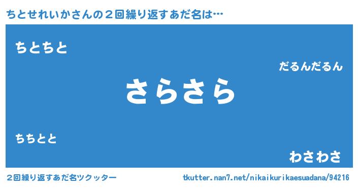 | 意味不明あだ名 | 『住所不定無職ちとせれいか(13歳)』 |