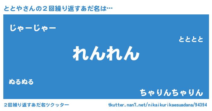 | 男性向けラノベタイトル風あだ名 | 『転生したらととやだった件』 |
