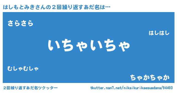 | 意味不明あだ名 | 『とにかく怪しいはしもとみき』 |