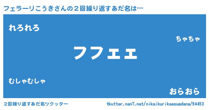 | 女子向けラノベタイトル風あだ名 | 『フェラーリこうきの雑貨屋さん』 |
