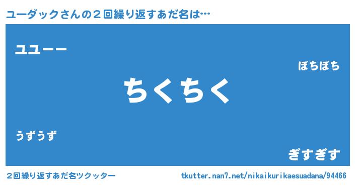 | 意味不明あだ名 | 『ユーダックフォーエバー』 |
