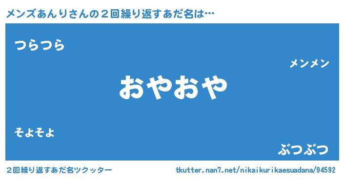 | 女子向けラノベタイトル風あだ名 | 『メンズあんりの卵を拾いまして』 |