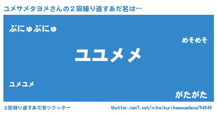 | ポケモン風あだ名 | 『ユメサダネ』『ユックウザ』 |