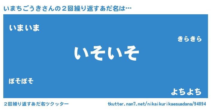 | 欧米人風あだ名 | 『ウサインいまちごうき』 |