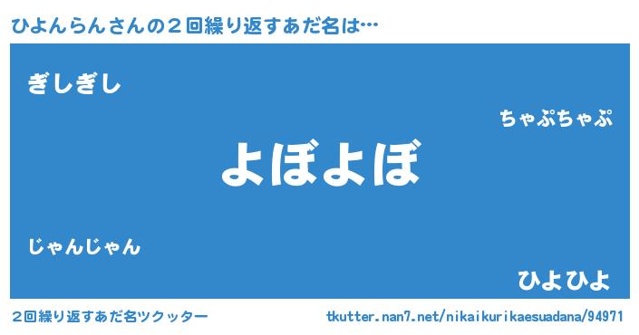 | ヘコむあだ名 | 『ひよんらん(苦笑)』『ひよにゅー』 |