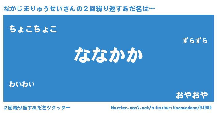 | 欧米人風あだ名 | 『なかじまりゅうせいクリステル』 |