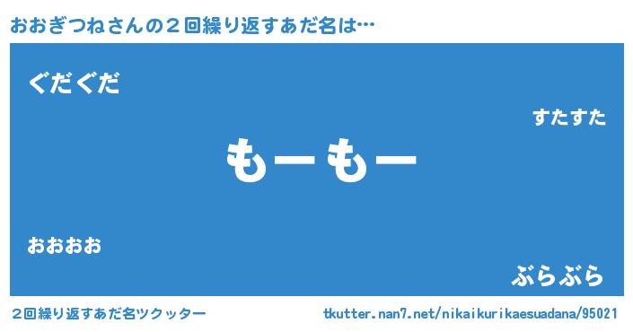 | 意味不明あだ名 | 『自称おおぎつね』『永久保存おおぎつね』 |