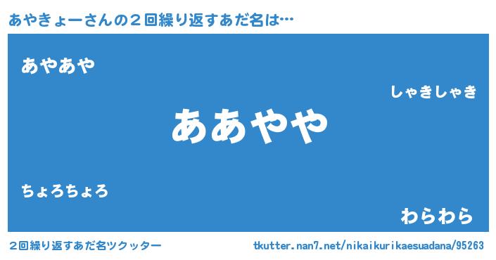 | 意味不明あだ名 | 『あやきょーフォーエバー』 |