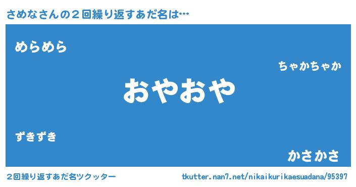 | 意味不明あだ名 | 『とにかく怪しいさめな』『自称さめな』 |