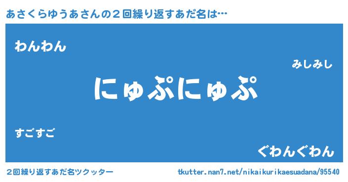 | 女子向けラノベタイトル風あだ名 | 『あさくらゆうあの卵を拾いまして』 |