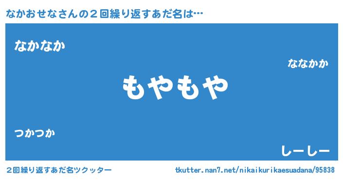 | 意味不明あだ名 | 『自称なかおせな』『ペロリンなかおせな』 |